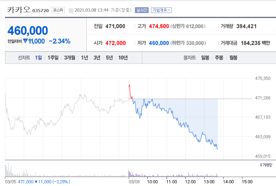 코로나19로 인해 일어난 2020년 주가 대폭락 이후 우주로 가는 주식 및 펀드 시장으로 인해 멘탈이 깨지고 있다 카카오 주가. '액면 분할' 카카오, 주가 상승은 제한적?